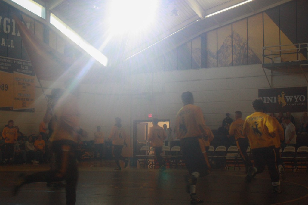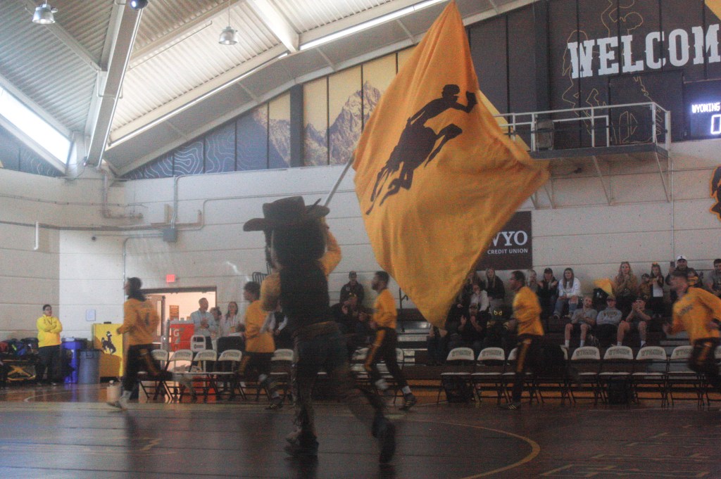 On November 5, 2023, Pistol Pete finishes walking out the wrestling team onto the UniWyo Sports Complex.