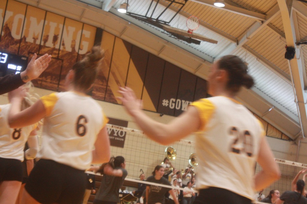 UW volleyball players enter the UniWyo Sports Complex for a home match against Utah State on October 28, 2023.